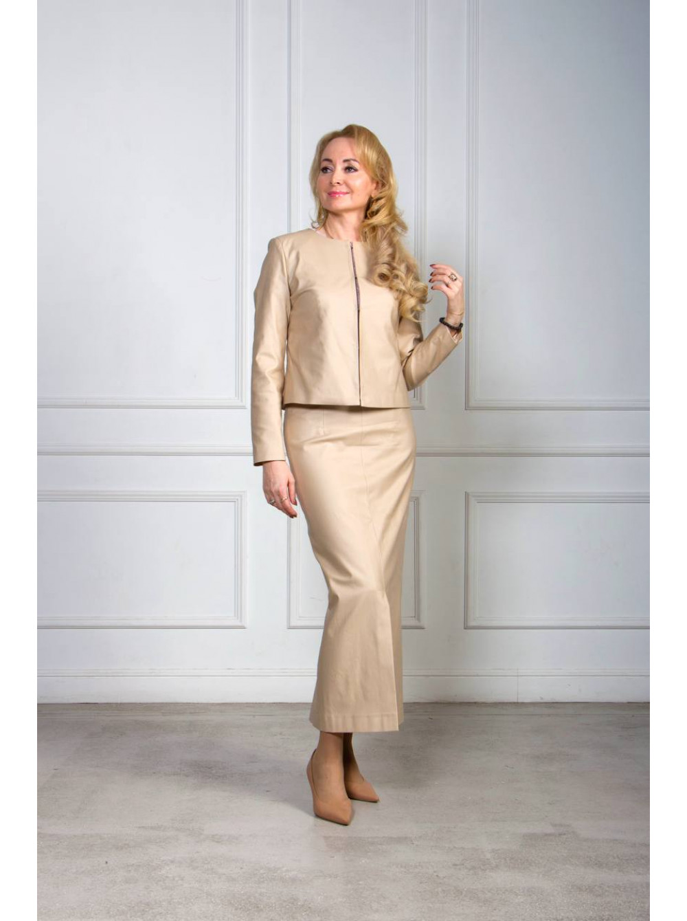 Цвет — нейтральный бежевый — благородный, универсальный и многогранный. Он идеально дополняет любой верх, будь то белая блузка, темная юбка или яркий топ, создавая образы от строго деловых до элегантно-повседневных.