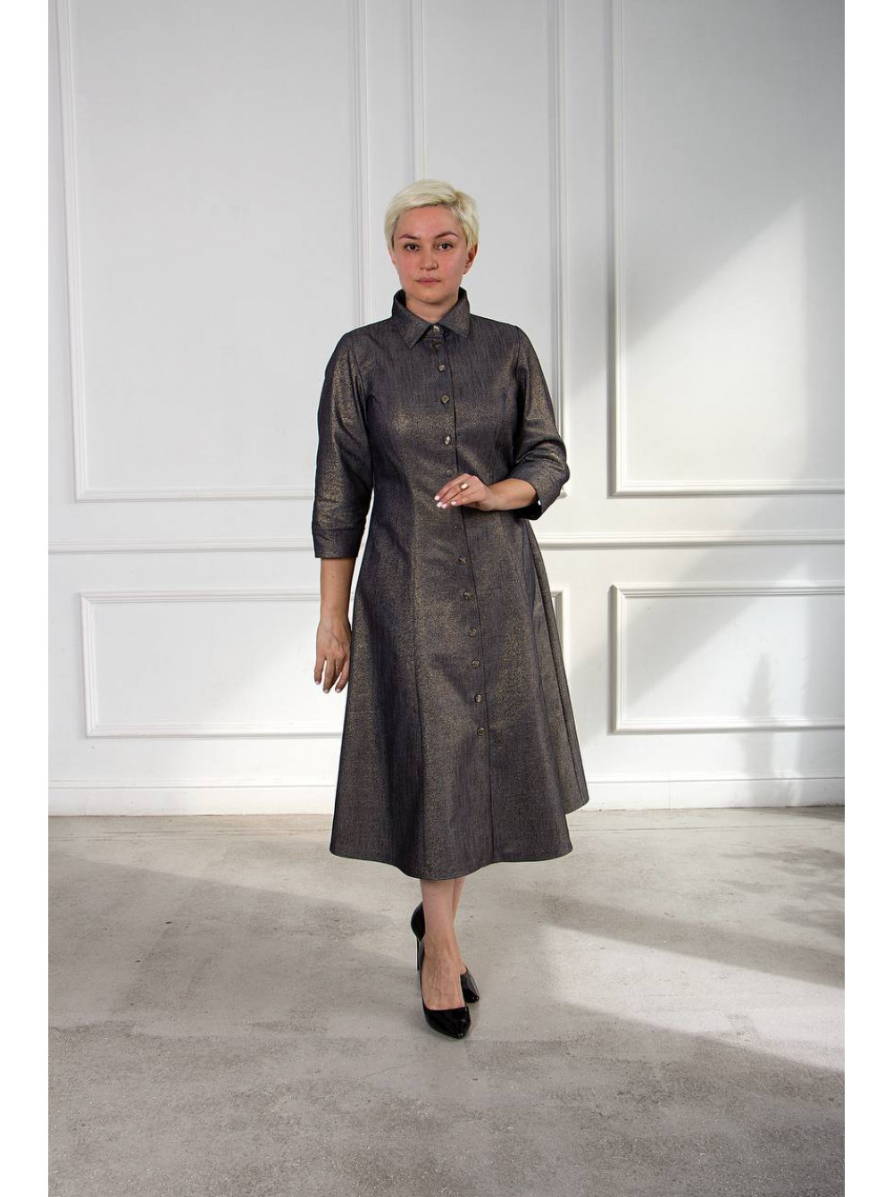Платье полу-прилегающего силуэта — это воплощение элегантности, женственности и безупречного стиля. Созданное из высококачественной джинсы, оно сочетает в себе мягкость, приятную драпировку и лёгкую структуру ткани, которая идеально облегает фигуру, подчеркивая её достоинства. Это платье для тех, кто ценит классику, уверенность и утончённость.