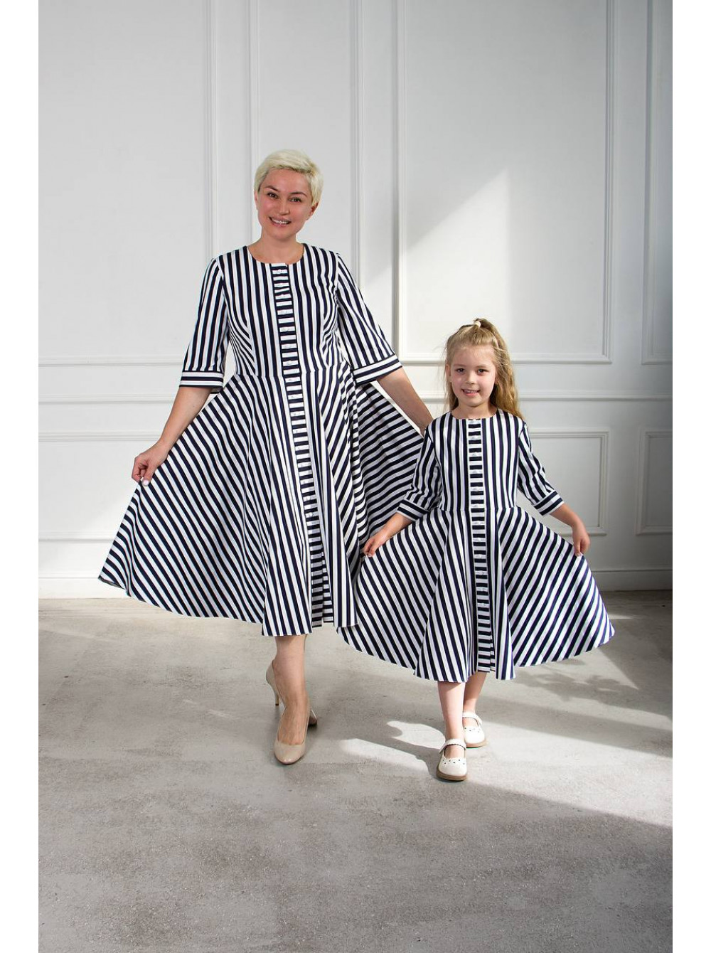Универсальность: Как видно на фото, это платье доступно в размерах как для взрослых, так и для детей, позволяя создать трогательный и стильный family look (образ мамы и дочки).