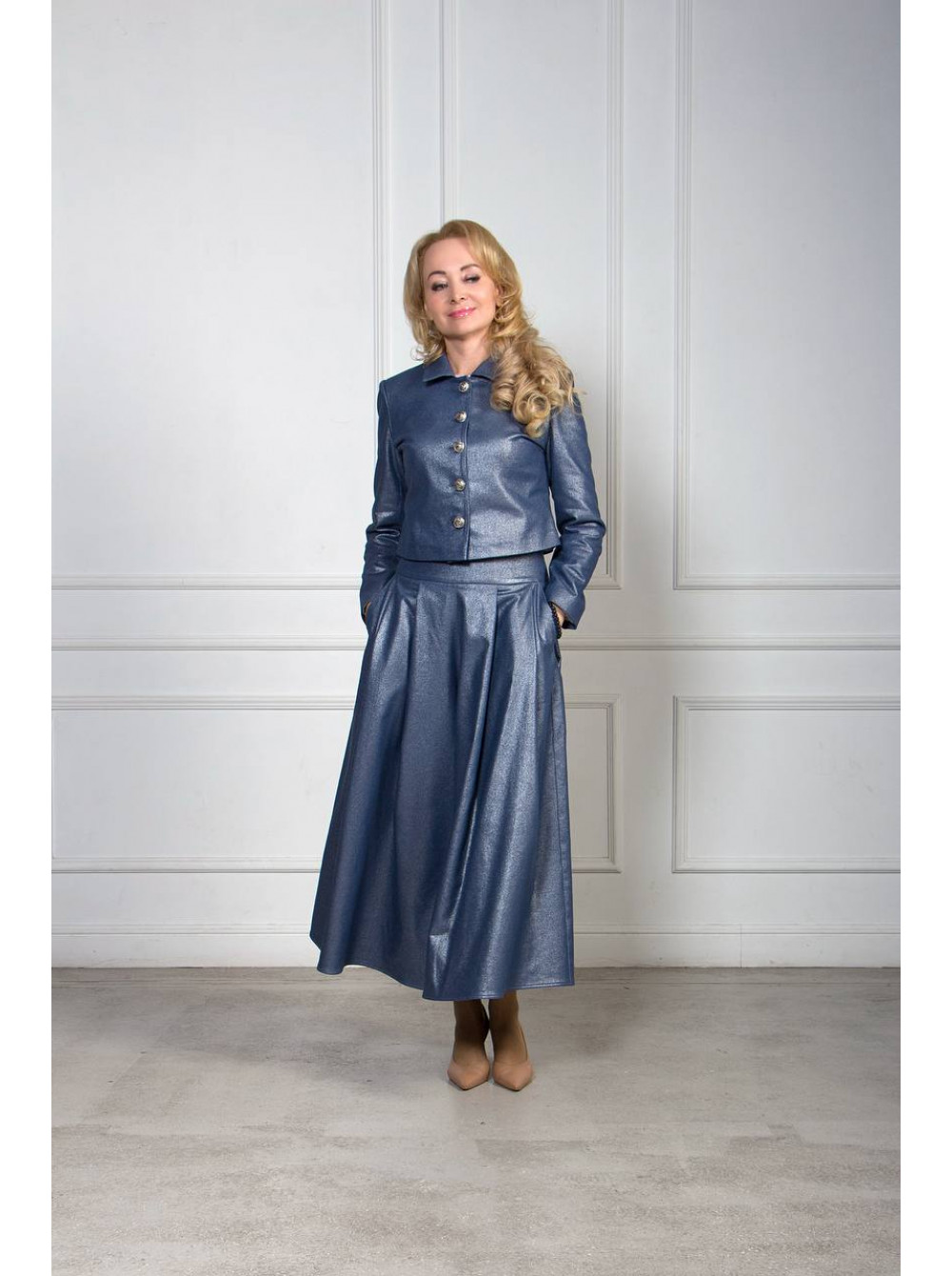 Этот жакет — воплощение современной элегантности и смелого стиля, где классика встречается с инновационным материалом. Созданный из плотной джинсовой ткани с эффектом металлического блеска, он сочетает в себе прочность и фактуру денима с глубоким, переливающимся отливом, который оживает при каждом движении.